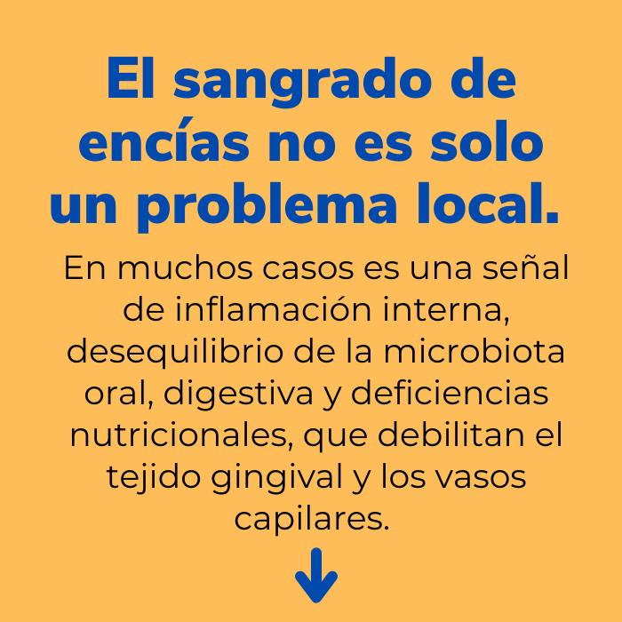 El sangrado de encías no siempre se debe a una mala higiene; muchas veces es una señal de inflamación, desequilibrio bacteriano y deficiencias nutricionales que debilitan el tejido gingival.