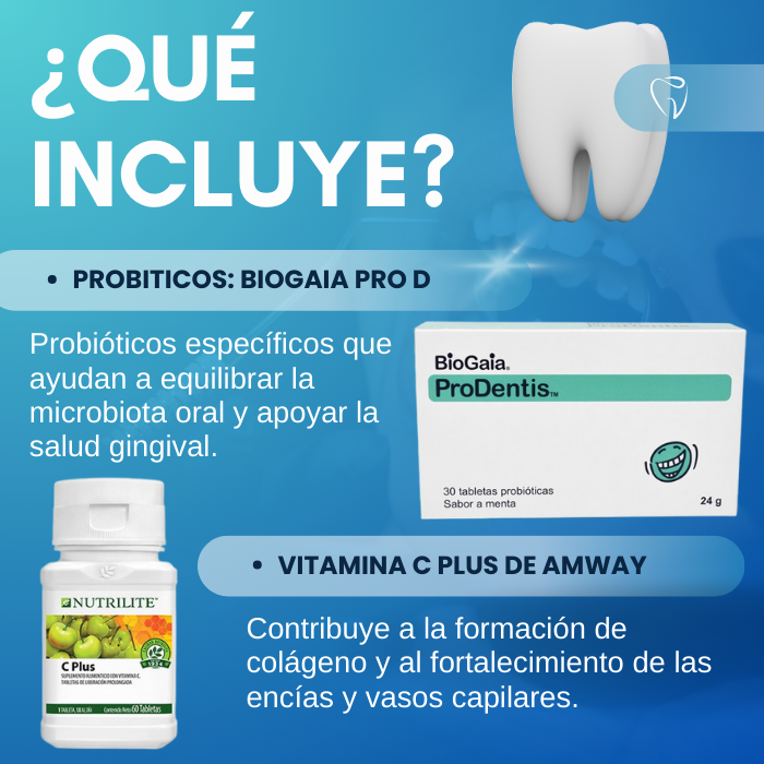 Este kit básico fue diseñado para apoyar la salud de las encías desde un enfoque funcional y natural, combinando apoyo interno y cuidado local diario.