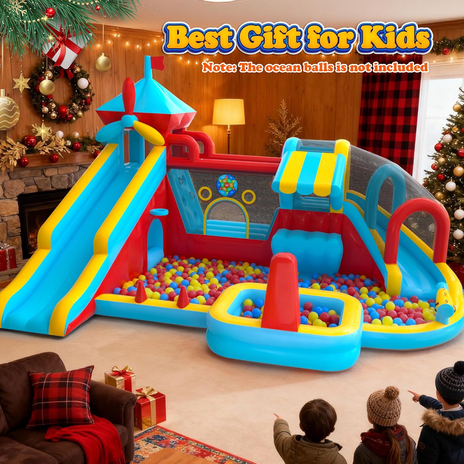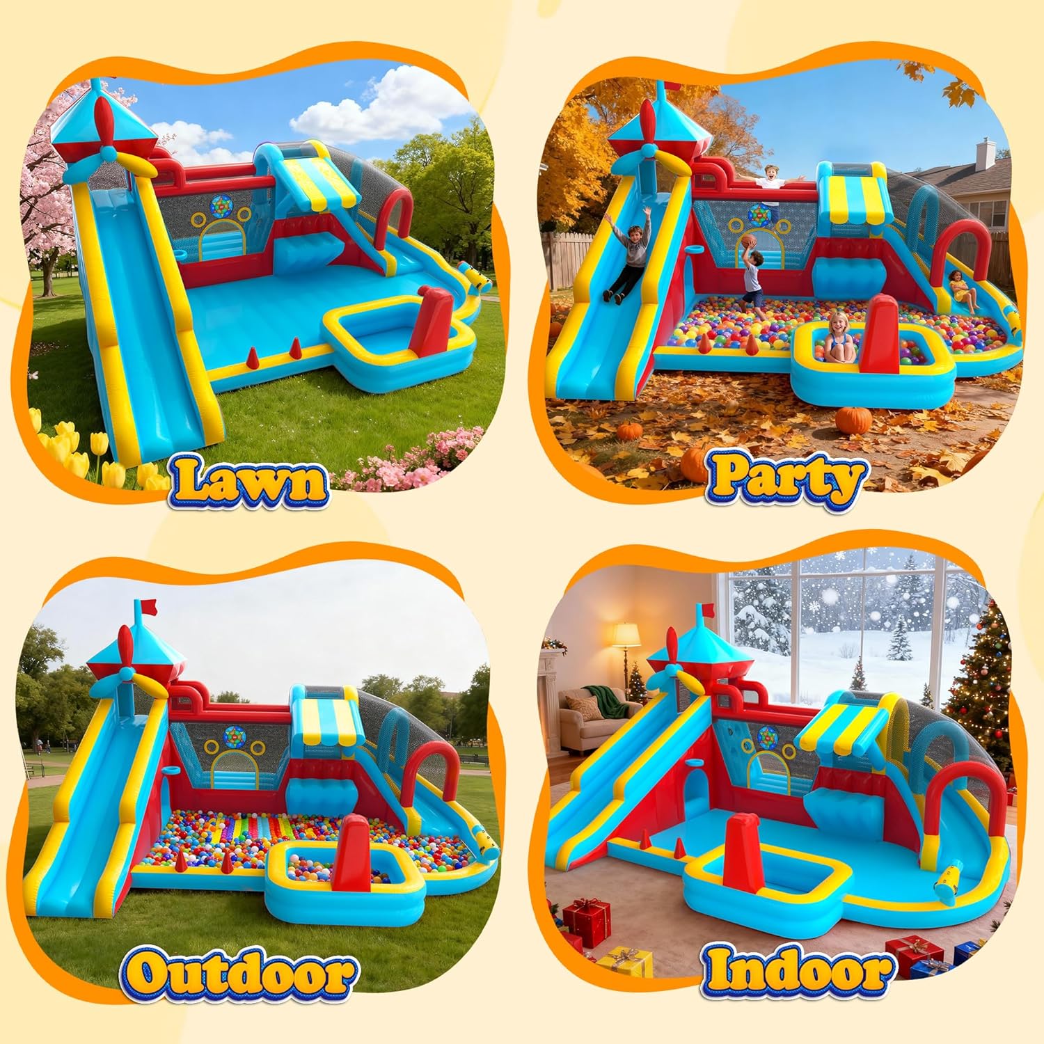 - [El regalo perfecto para todas las estaciones] Esta casa inflable es adecuada para niños de 3 a 10 años, es el regalo perfecto para cumpleaños, vacaciones, Navidad, Halloween y cualquier ocasión especial. Los niños pueden disfrutarlo durante todo el año: colócalo al aire libre bajo el sol de verano o muévalo al interior para divertirse activamente durante el invierno. Esta versátil casa de rebote ofrece una alegría infinita, sin importar la temporada