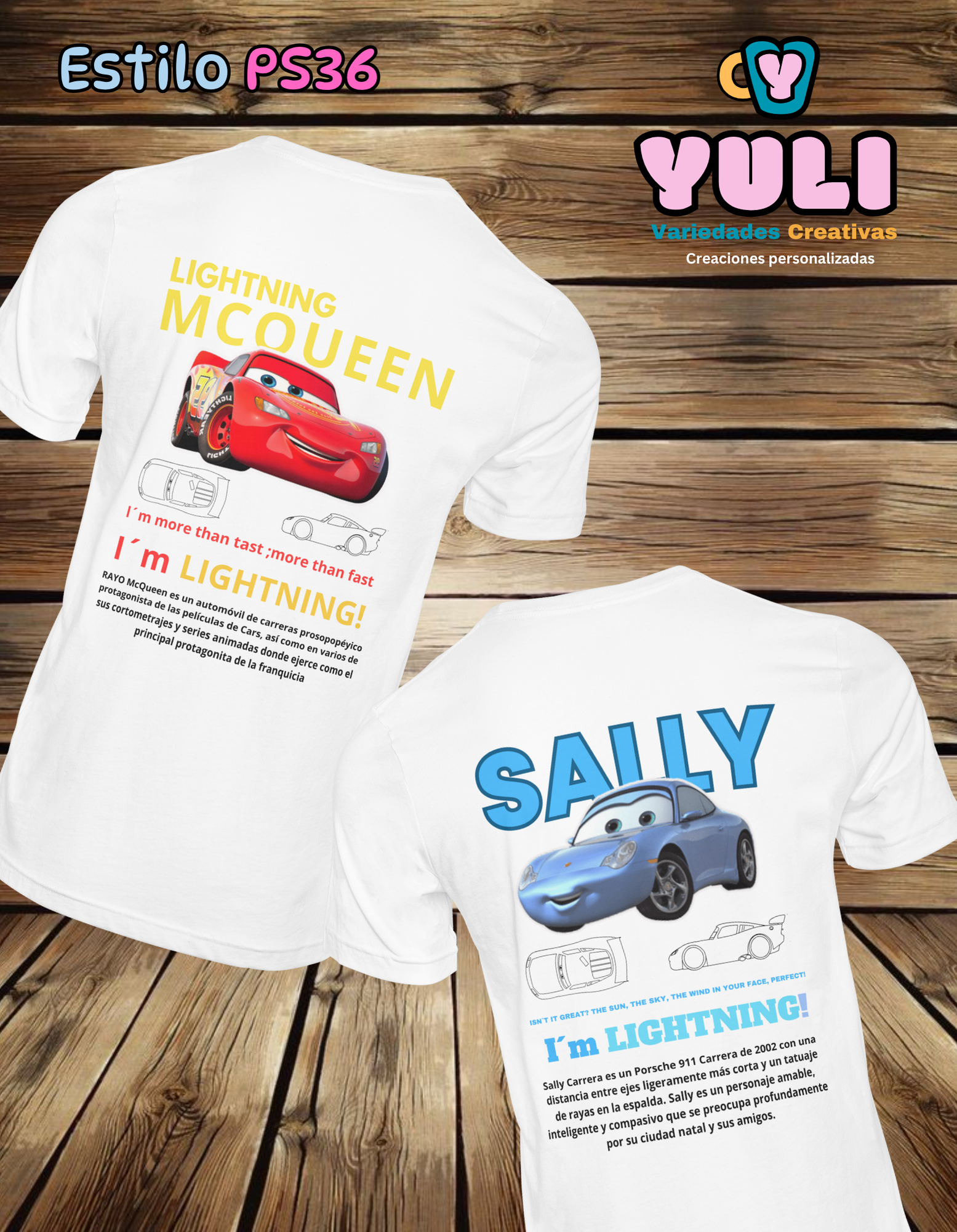 Playera de algodón en color blanco o negro, de Mc Queen y Sally contiene de foto, texto y gráficos.
