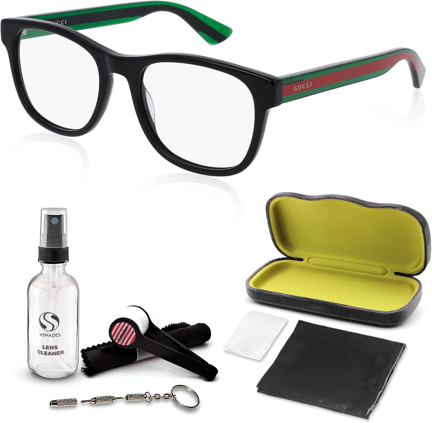 Gucci GG0004ON – Lentes de forma cuadrada + paquete con kit de gafas de lujo eSHADES