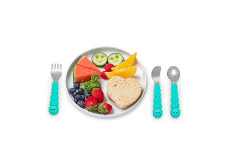Las cucharas hondas facilitan la preparación de alimentos para niños en edad preescolar y bebés que están aprendiendo a comer solos. Los tenedores tienen bordes redondeados que permiten que los niños coman solos. El cuchillo de acero inoxidable, apto para niños, es la manera perfecta de iniciar a los niños pequeños en el corte seguro de alimentos. Los mangos gruesos y redondeados son fáciles de sujetar por las manitas de los pequeños. Los extremos de nuestros cubiertos están diseñados para adaptarse fácilmente a las bocas de los más pequeños. Ideal para el destete guiado por el bebé.