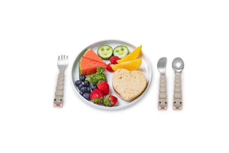 - Los extremos de la cuchara y el tenedor están diseñados para adaptarse fácilmente a las bocas de los niños.