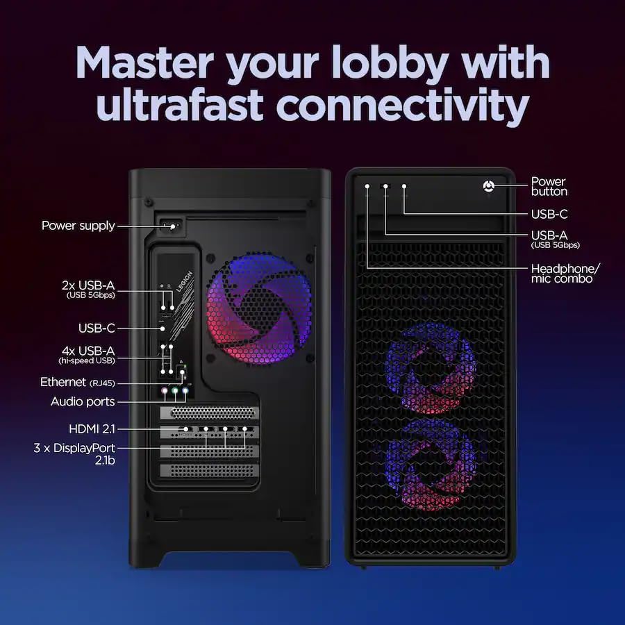 - Internal Storage: Say goodbye to slow load times and stutters. With up to 64GB of DDR5 5600MHz RAM, this system doubles the bandwidth of DDR4, ensuring rapid data access and flawless multitasking. Combine that speed with up to 8TB PCIe 4.0 SSD plus 2TB HDD, and you’ll have the performance and capacity to store and launch everything instantly, from massive open-world games to 4K video projects