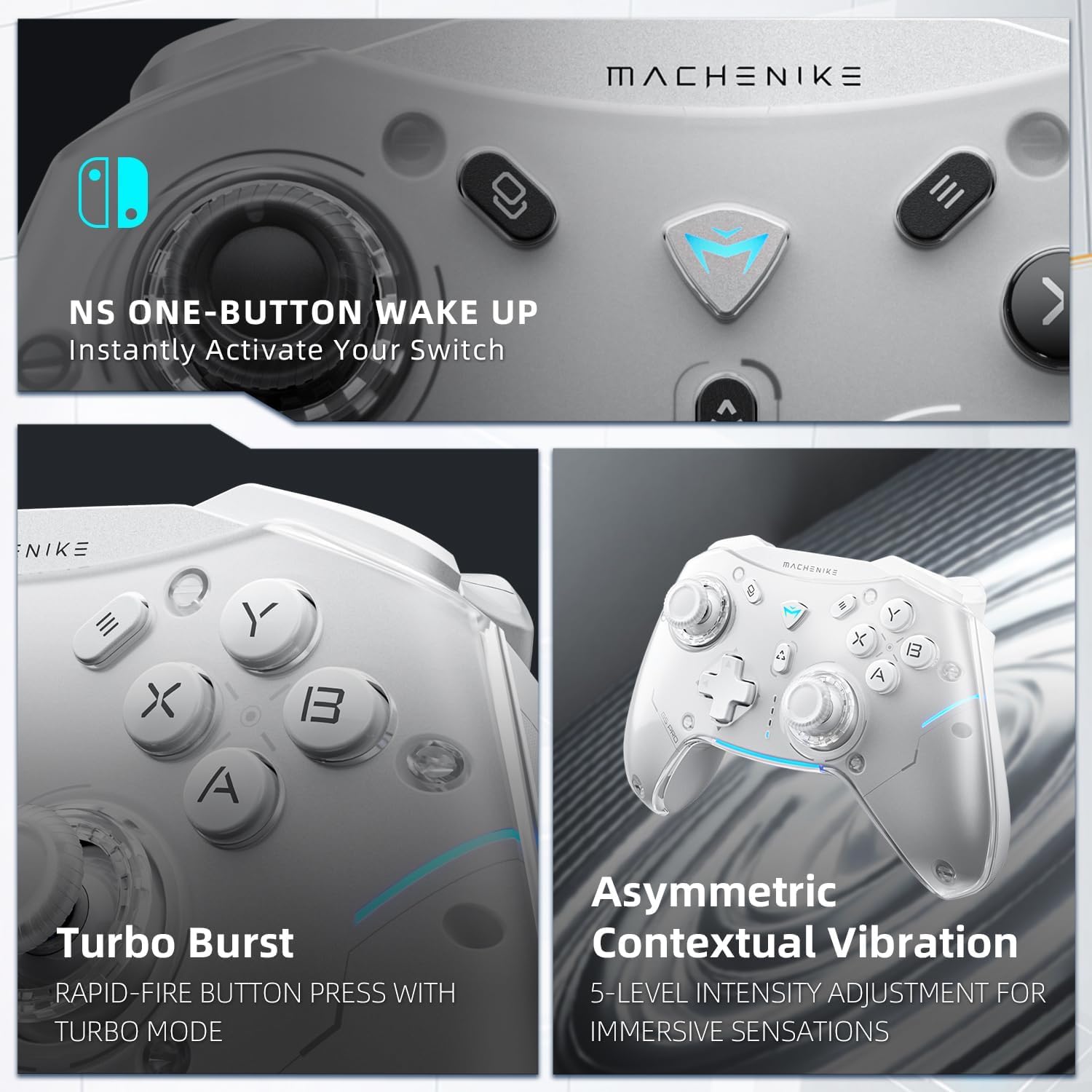 Machenike G5 Pro Wireless Gaming Controller for Windows PC,Switch,IOS&Android,PC Controller Hall Effect Joystick?Triggers/Gyroscope,RGB Lights (White)