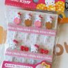 Este adorable set contiene ocho palillos de comida que presentan cuatro diseños diferentes pero igualmente dulces de Hello Kitty, incluyendo a Hello Kitty asomándose detrás de una galleta y una piruleta, así como un motivo más grande de la propia Hello Kitty y otro de su característico lazo rojo.