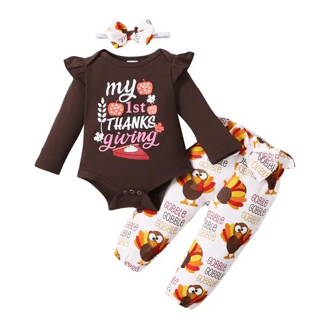 Pijama de 3 piezas diseño de pavo Q120.00