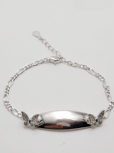 Diseño con placa ideal para grabados, dos mariposas con circonias a los lados