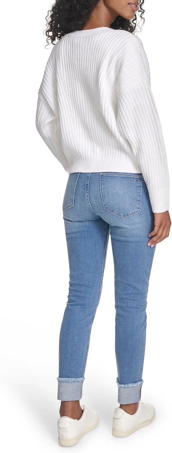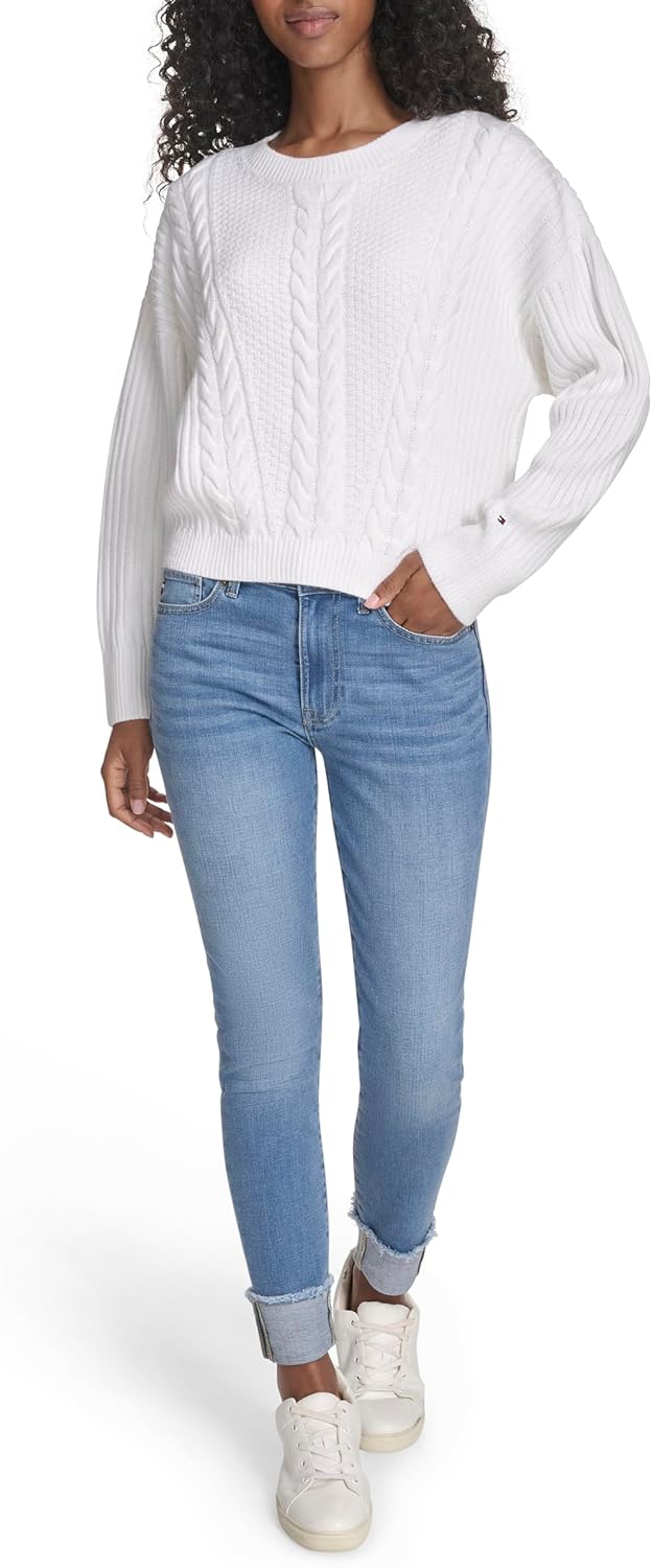 Tommy Hilfiger Suéter Bobbi con cuello redondo y cable sólido para mujer